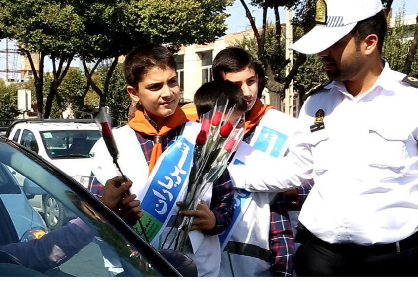 همیاران پلیس شرکت کننده در این طرح با اهدا گل به رانندگان قانونمند از آنان تجلیل کردند.